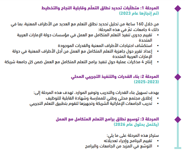 أطلقت المؤسسة برنامج التعلم المتكامل مع العمل لدعم توطين نماذج التعلم التجريبي في جامعات الإمارات العربية المتحدة.