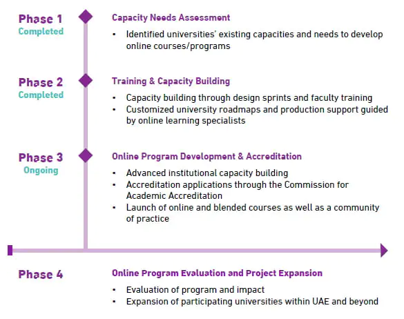 UCQOL aims to provide inclusive and innovative educational opportunities for Emirati and Arab youth. As the first consortium of its kind in the Arab region, UCQOL utilizes a multiphased approach to build the capacity of higher education institutions, enabling them to produce market-driven, student-centric, and accredited online programs.